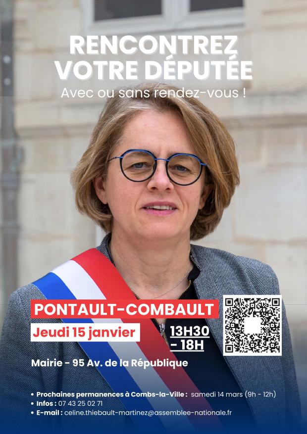 Vous souhaitez rencontrer Mme Céline Thiébault-Martinez, députée de notre circonscription ? Plusieurs dates vous sont proposées, avec ou sans rendez-vous, en Mairie (se présenter à l'accueil du château) :