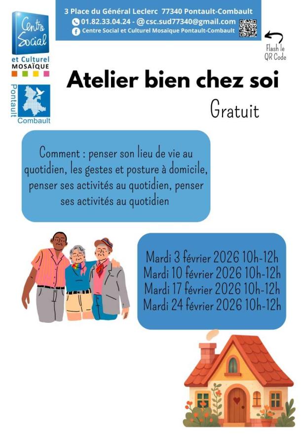 Le centre social et culturel Mosaïque vous propose un atelier dédié aux seniors pour optimiser son bien-être chez soi au quotidien.