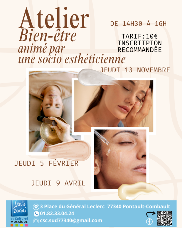Profitez d'un atelier bien-être "Un temps pour soi" proposé par le centre social et culturel Mosaïque et animé par une socio-esthéticienne. Mettez l'accent sur le soin de vos mains pour lutter contre les effets du froid.