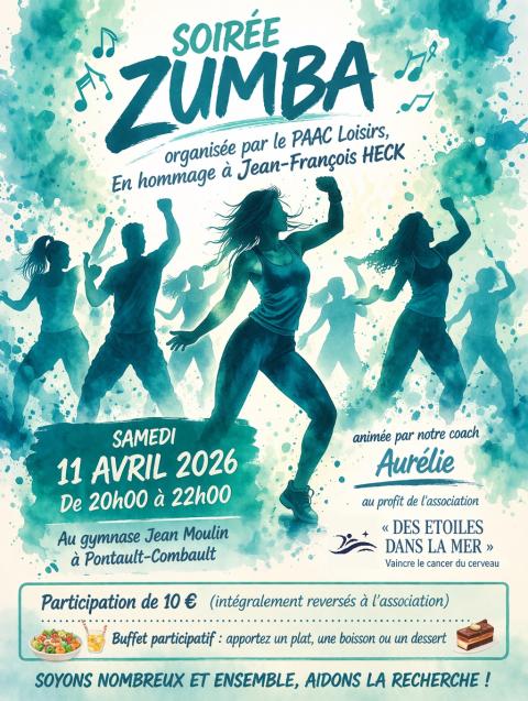 Le PAAC renfo-zumba organise une soirée Zumba en faveur de l'association "Des étoiles dans la mer", qui récolte des fonds pour la recherche contre le glioblastome, une tumeur cérébrale agressive.