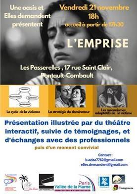 Les associations "Une Oasis" et "Elles demandent" proposent un temps d'échange sur le thème de l'emprise et de la violence, vendredi 21 novembre.