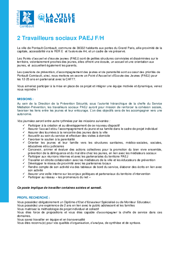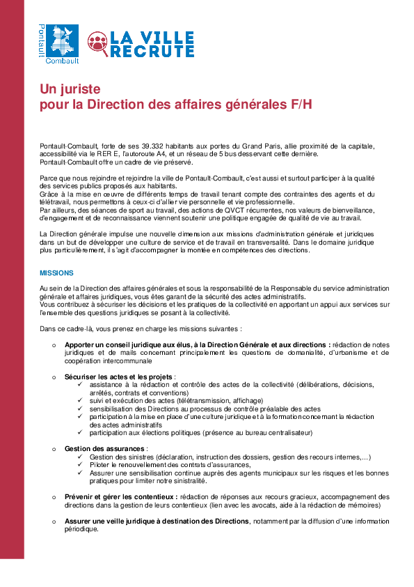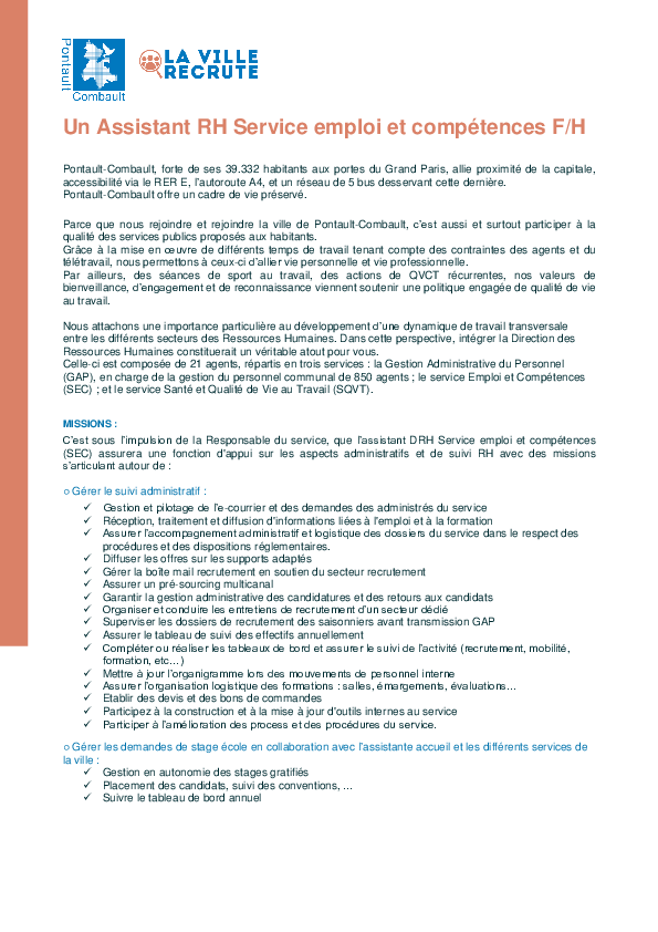 Vous pouvez envoyer votre candidature spontanée par mail à : recrutement@pontault-combault.fr