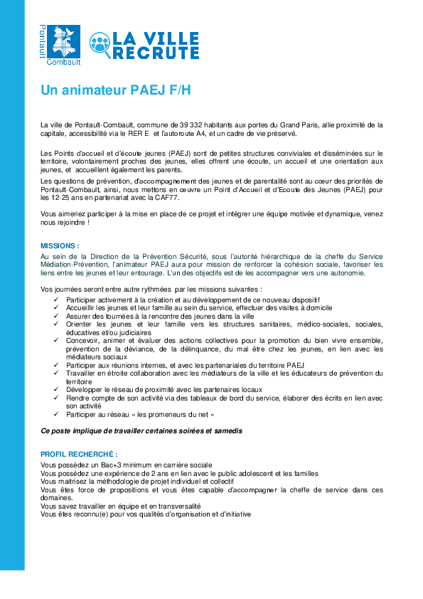 Vous pouvez répondre à une offre par mail à : recrutement@pontault-combault.fr