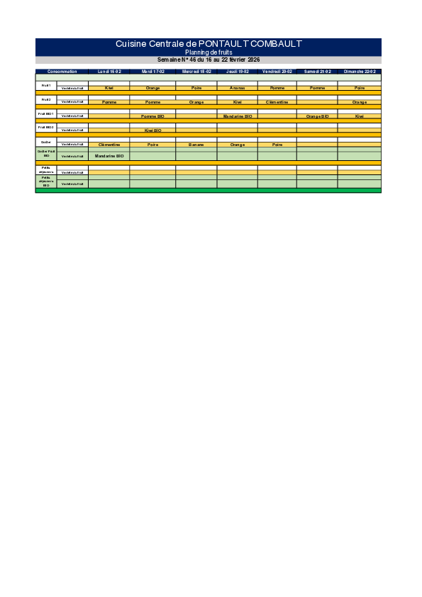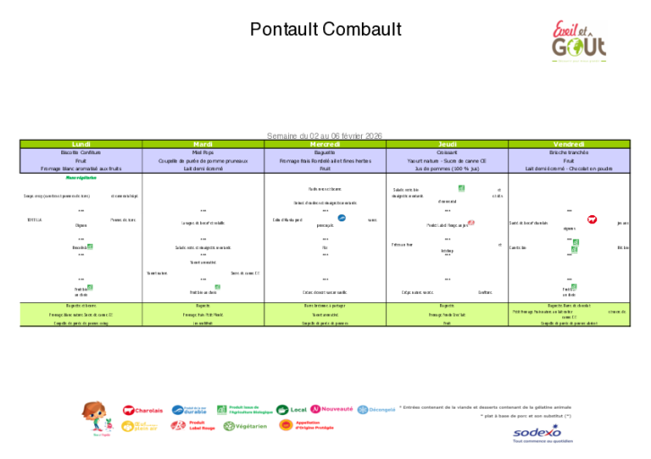 Les menus sont déterminés dans le cadre du Plan Alimentaire et des recommandations du GEMRCN (Groupe d’étude des marchés de restauration collective et de nutrition) du 4 mai 2007. L’objectif est d’ajuster les grammages et les denrées au type de rationnaires, de faire en sorte de servir des repas équilibrés et de veiller à éviter le grignotage, et par là-même, l’obésité des enfants.